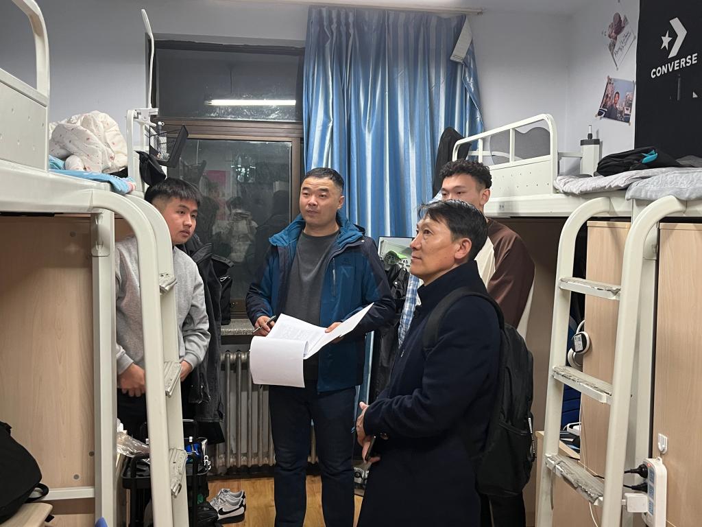 冬去春来,新学期伊始,校园的生活也回到了最初的平静。为营造良好的学习生活环境,进一步关心学生成长成才,2023年2月19日晚,学院党委书记八格、院长吴英喆、党委副书记孟海光、副院长敖特根白乙拉及专职辅导员分4小组到学生公寓1号楼、2号楼、3号楼、4号楼等,走访学生宿舍。