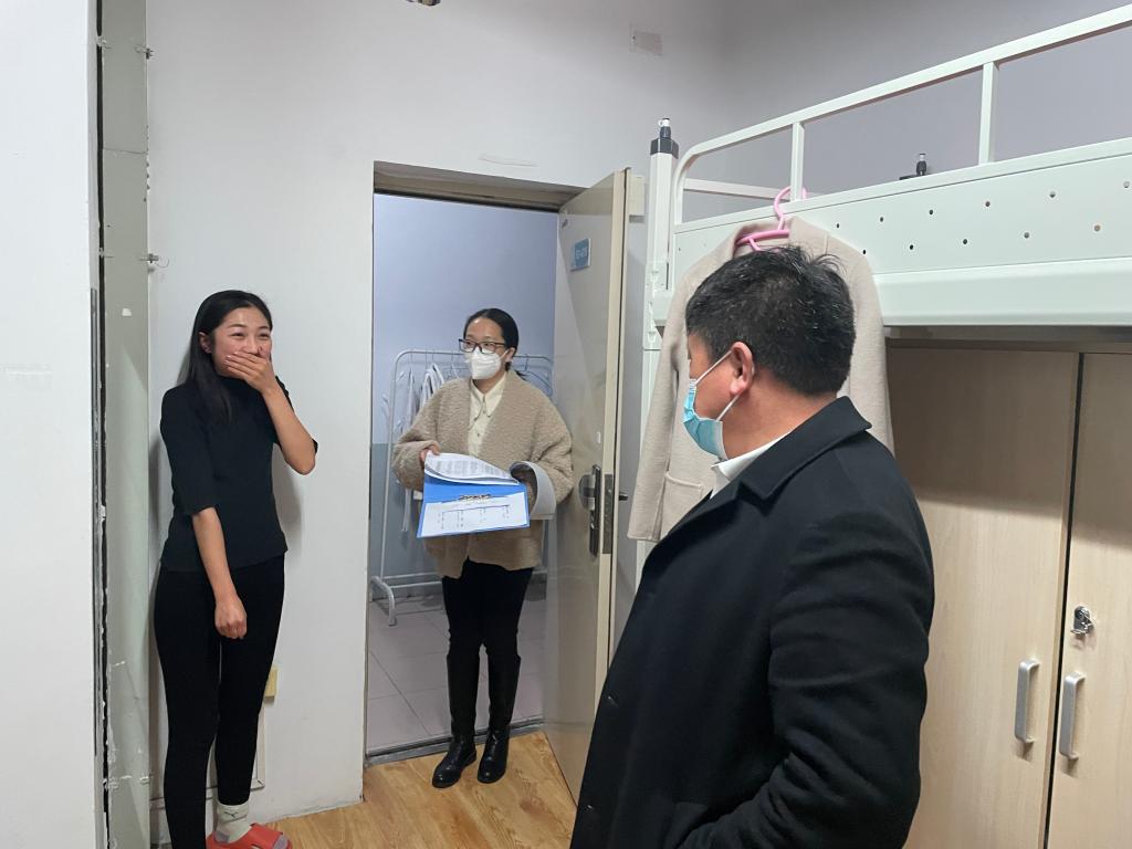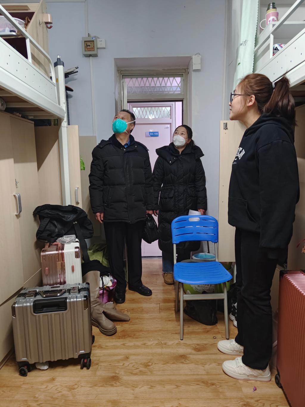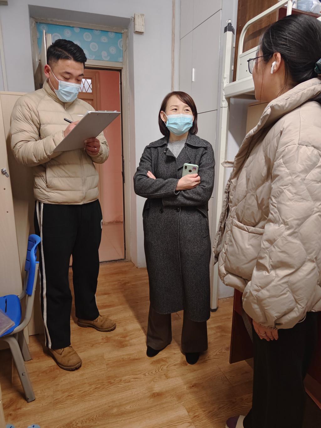 走访过程中,学院领导和老师看望返校的学生,并与学生亲切交谈。“经过寒假,重返校园是否适应”“授课方式转换,是否做好学习准备”“作为毕业年级的同学,论文写作和就业是否顺利”“家庭经济情况如何,是否需要帮助”……这些问题都是学院对学生们关心关爱和访谈交流的热点。同时,还不忘提醒学生遵守学校学生管理和宿舍管理的相关规定,抓好宿舍卫生,关注身体健康,提高安全防范意识。
