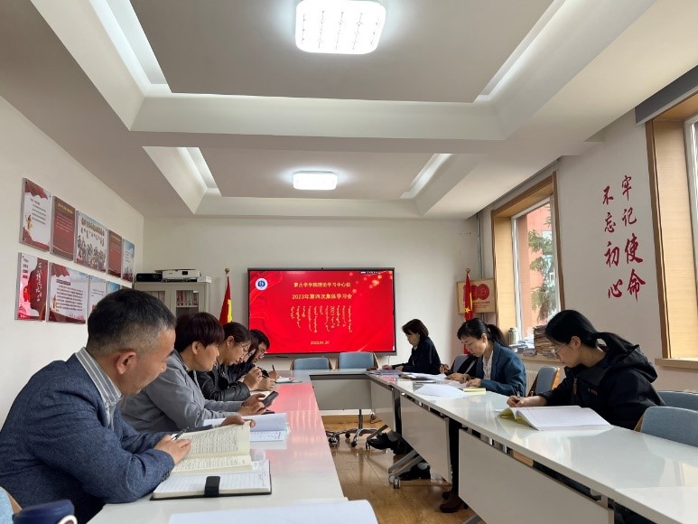 2023年4月20日下午,太阳集团tyc151cc在蒙古学楼二楼小会议室举行理论学习中心组第四次集体学习会,学院党委书记八格主持会议,理论学习中心组全体成员参加会议。