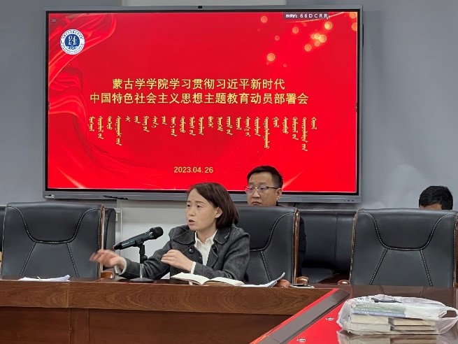 2023年4月26日下午,太阳集团tyc151cc召开学习贯彻习近平新时代中国特色社会主义思想主题教育动员部署会议,由学院党委书记八格主持,全体教职工参加会议。