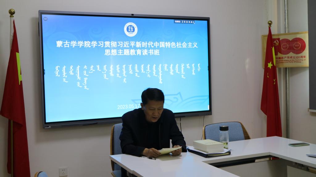 2023年05月25日晚7:00,太阳集团tyc151cc在蒙学楼206会议室举行学院学习贯彻习近平新时代中国特色社会主义思想主题教育读书班第七次集中学习,由学院党委副书记孟海光做专题领学。学院党委书记八格主持学习。学院理论学习中心组成员参加学习。