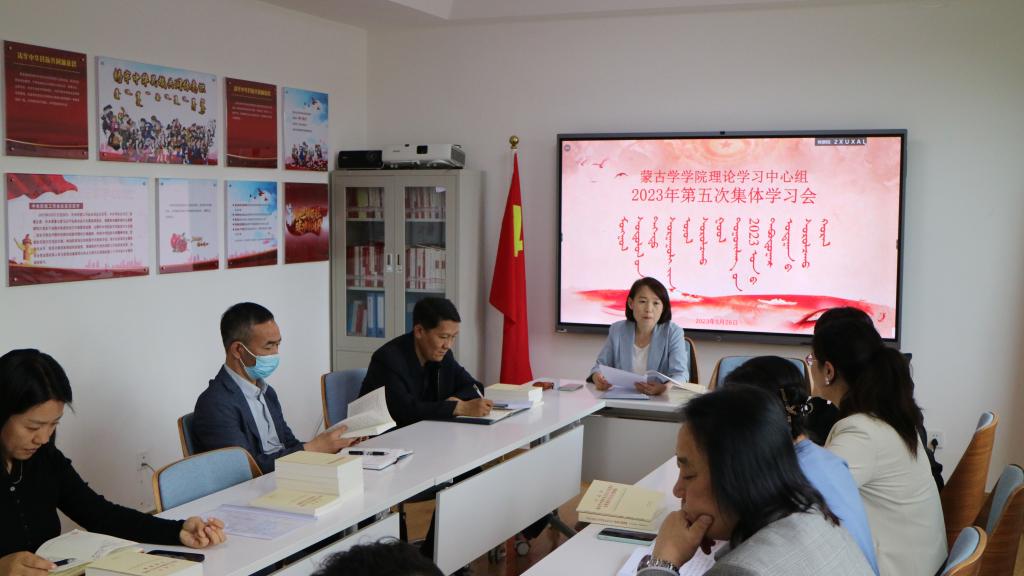 2023年5月26日上午,太阳集团tyc151cc党委在蒙学楼二楼小会议室举行理论学习中心组第五次集体学习。学院党委书记八格主持学习,理论学习中心组全体成员参加学习。