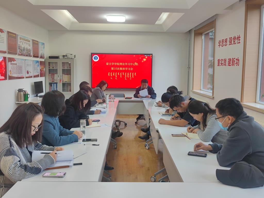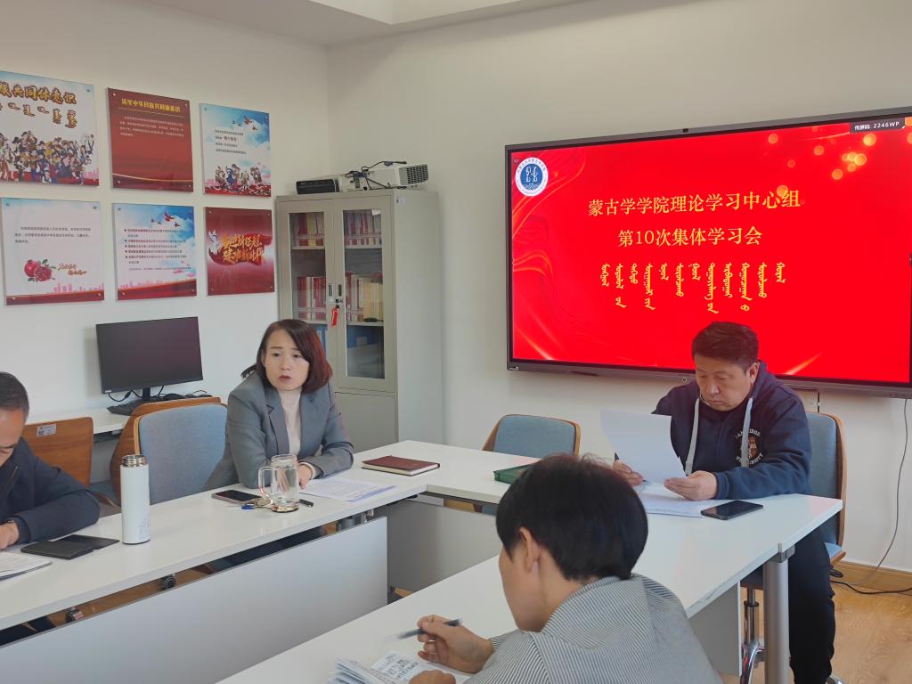 2023年11月8日下午,太阳集团tyc151cc党委在蒙学楼二楼小会议室举行理论学习中心组第十次集体学习。学院党委书记八格主持学习,理论学习中心组全体成员参加学习。