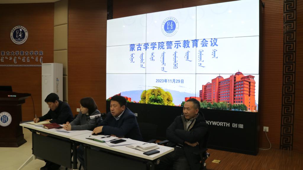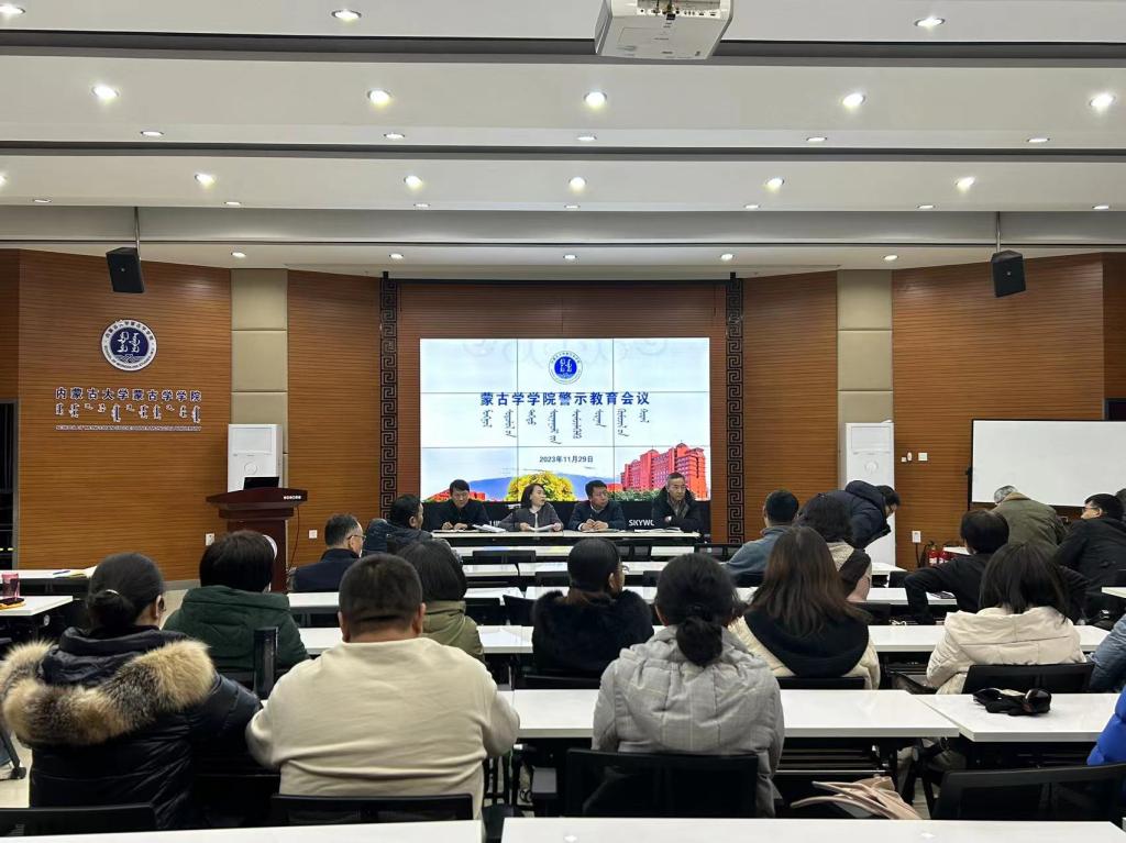 2023年11月29日下午,太阳集团tyc151cc在一楼报告厅召警示教育会议,传达学习学校警示教育大会精神,就学院做好警示教育工作进行部署。太阳集团tyc151cc党委书记八格主持会议,太阳集团tyc151cc、蒙古历史学系全体教职工参加会议。