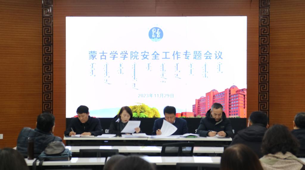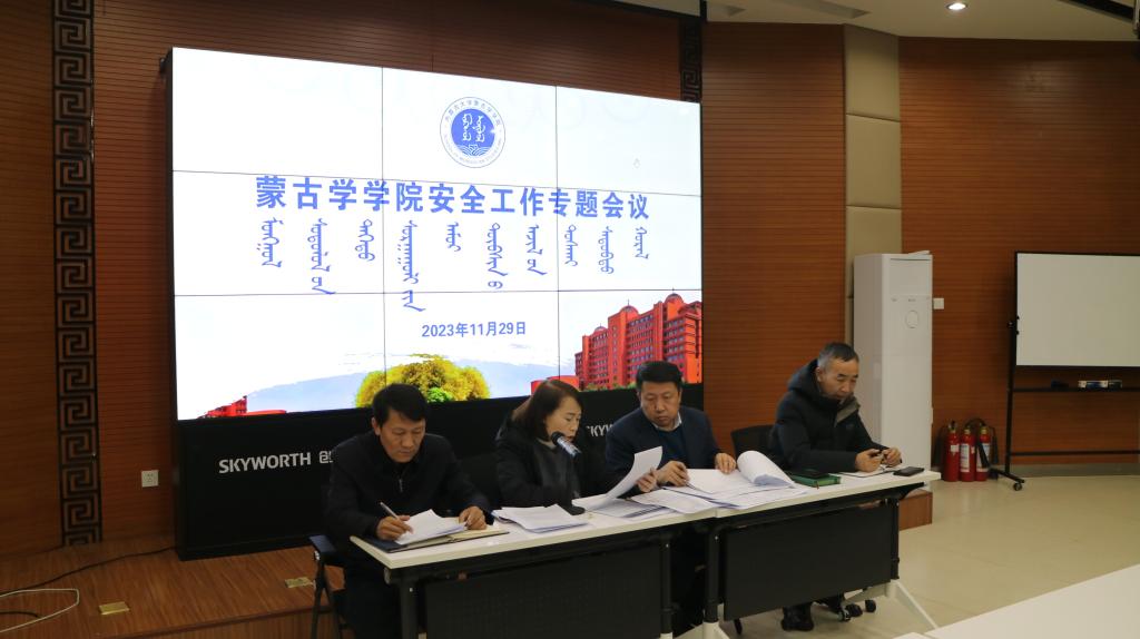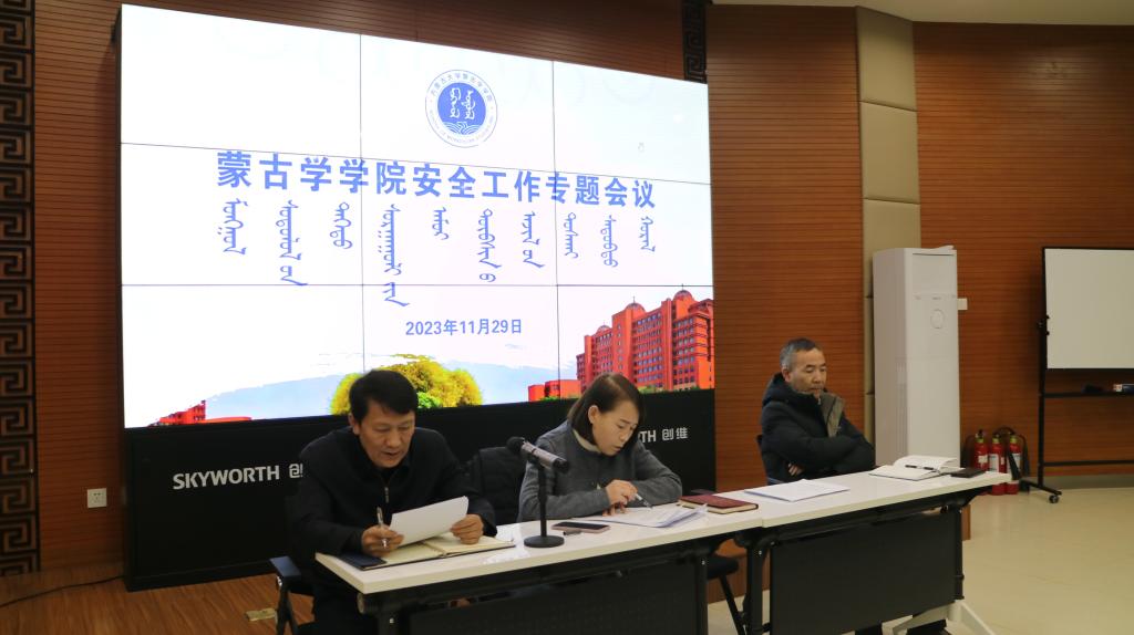2023年11月29日下午,太阳集团tyc151cc在一楼报告厅召开安全工作专题会议,传达学习了自治区教育厅和学校安全工作会议精神及文件要求,就学院做好冬季安全工作进行动员部署。太阳集团tyc151cc党委书记八格主持会议,太阳集团tyc151cc、蒙古历史学系全体教职工参加会议。
