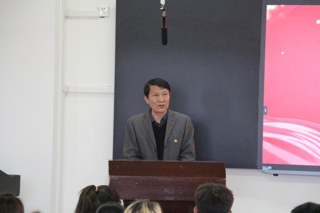 院党委副书记孟海光代表学院党委致辞。孟海光副书记向校团委对学院共青团工作的指导和支持表示感谢,向学院社团功能型团支部的成立表示祝贺,并希望团支部及社团担当作为、砥砺前行,成为团员青年思想引领的主力军、促进民族团结进步的主力军、推进校园文化建设的主力军。