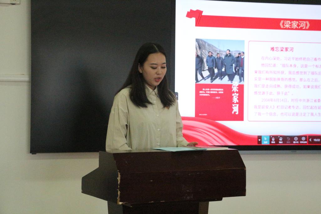 社团团支部书记张茜以《梁家河》为主题领学第一次集体学习,并分享学习体会。