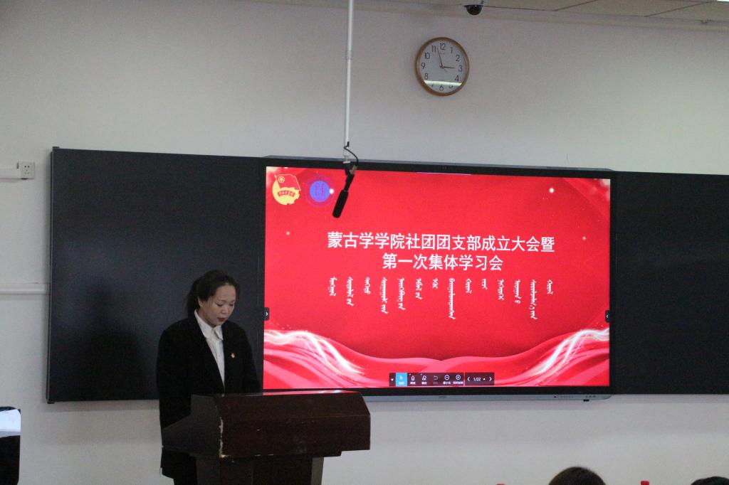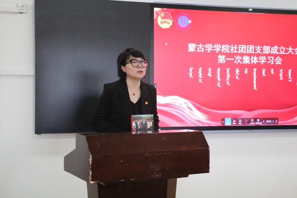 社团团支部副书记乃日木达拉介绍团支部情况及团支部委员。