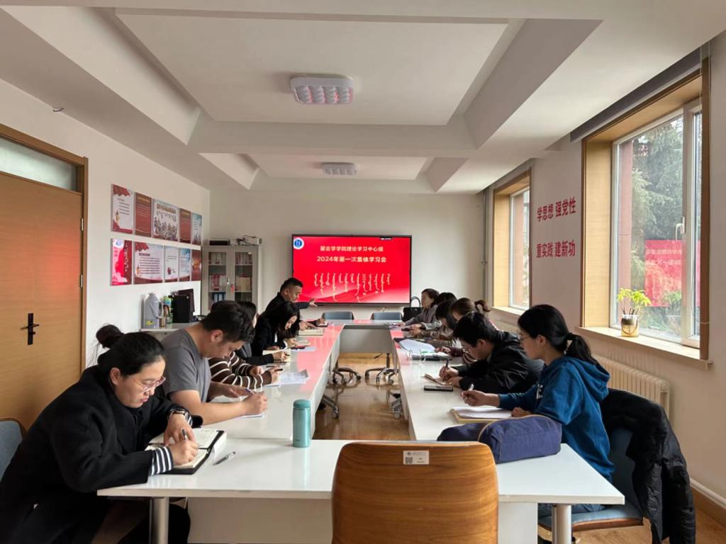 2024年2月28日下午,太阳集团tyc151cc党委在蒙学楼二楼小会议室举行理论学习中心组2024年第一次集体学习。学院党委书记八格主持学习。学院领导班子成员、党支部书记、系所(教学部)负责人、行政科室负责人参加学习。