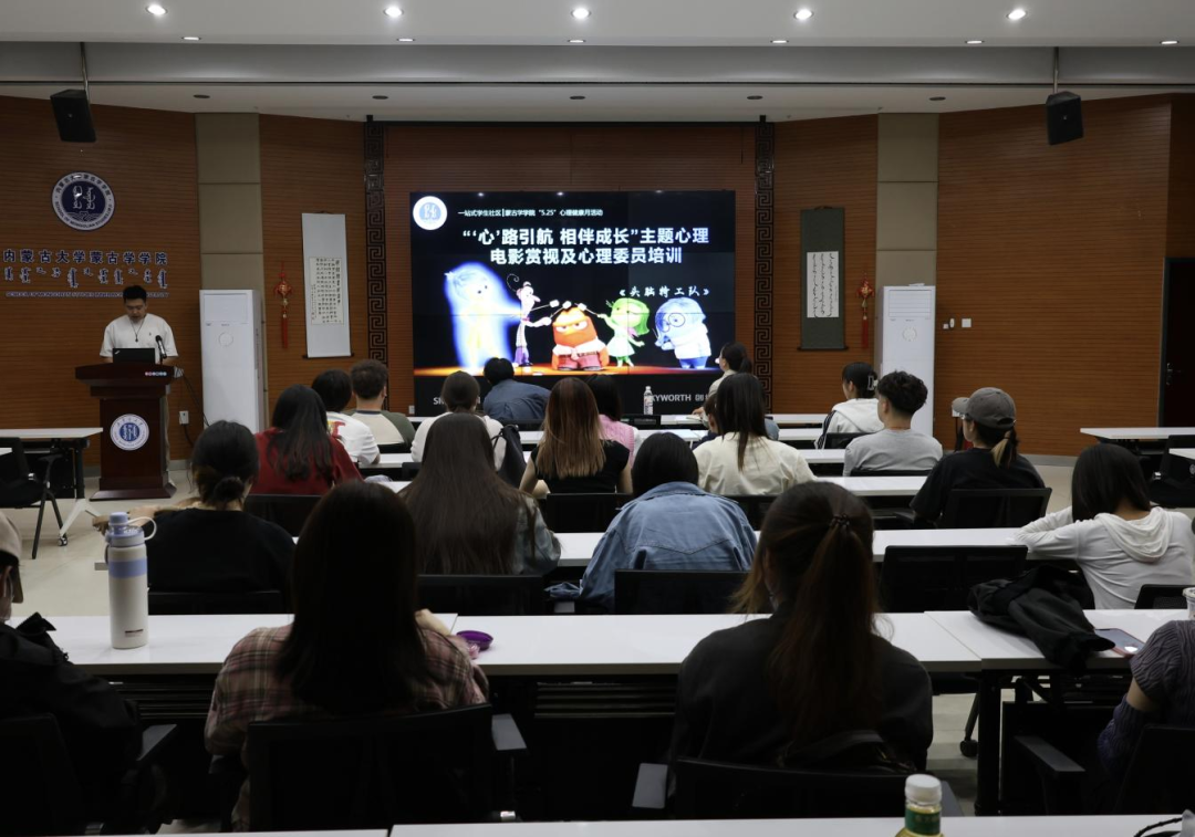 为进一步做好一站式学生社区学生心理健康教育工作,培养学生心理健康意识,提高学生心理素质,提升各班级开展心理健康活动能力,以“5.25”心理健康宣传月活动为契机,太阳集团tyc151cc于2024年4月25日在学院一楼报告厅开展了“‘心’路引航 相伴成长”主题心理电影赏视及心理委员培训。学校学生心理健康教育与咨询中心张易坤、学院团委副书记兼学工办副主任乌楞花、各班级心理委员、本科生事务中心心理健康部成员参加。本次活动由太阳集团tyc151cc本科生事务中心心理健康部承办,中国少数民族语言文学(蒙古语言文学)专业2021级学生张埔昕主持。