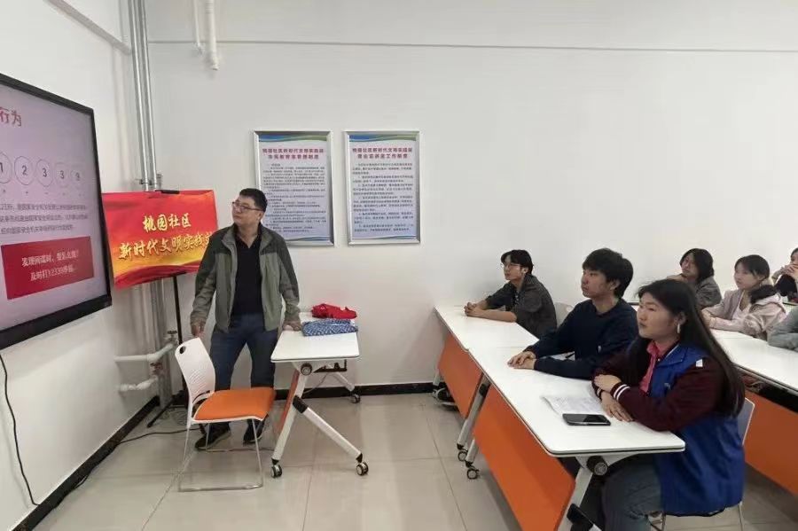 为贯彻落实总体国家安全观,增强全民国家安全意识和素养,进一步扩大宣传力度,赛罕区大学东路街道桃园社区举办第九个全民国家安全教育日讲座,社区居民,我院2023级文物与博物馆学团支部全体团员、青年参加讲座。