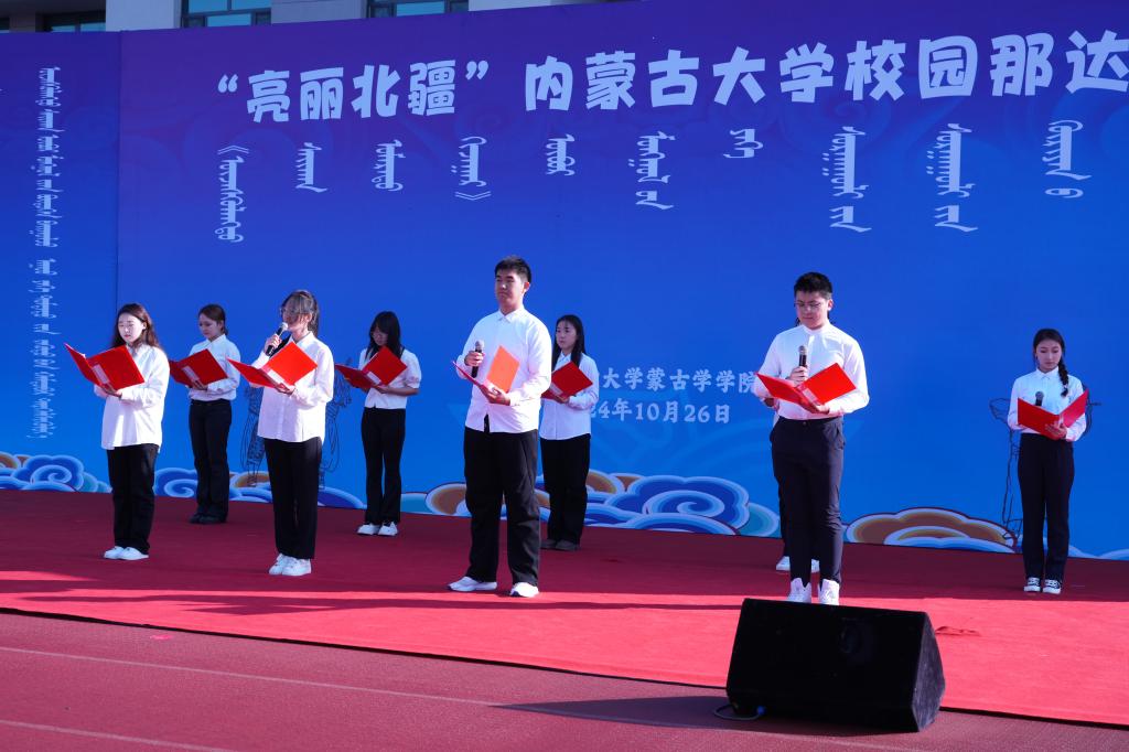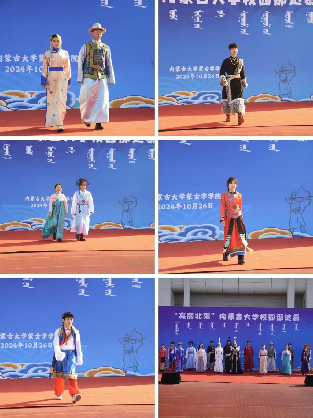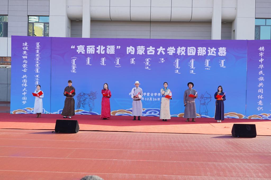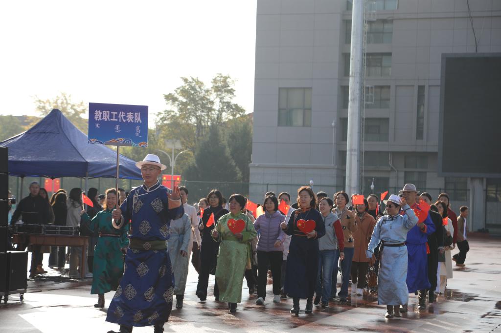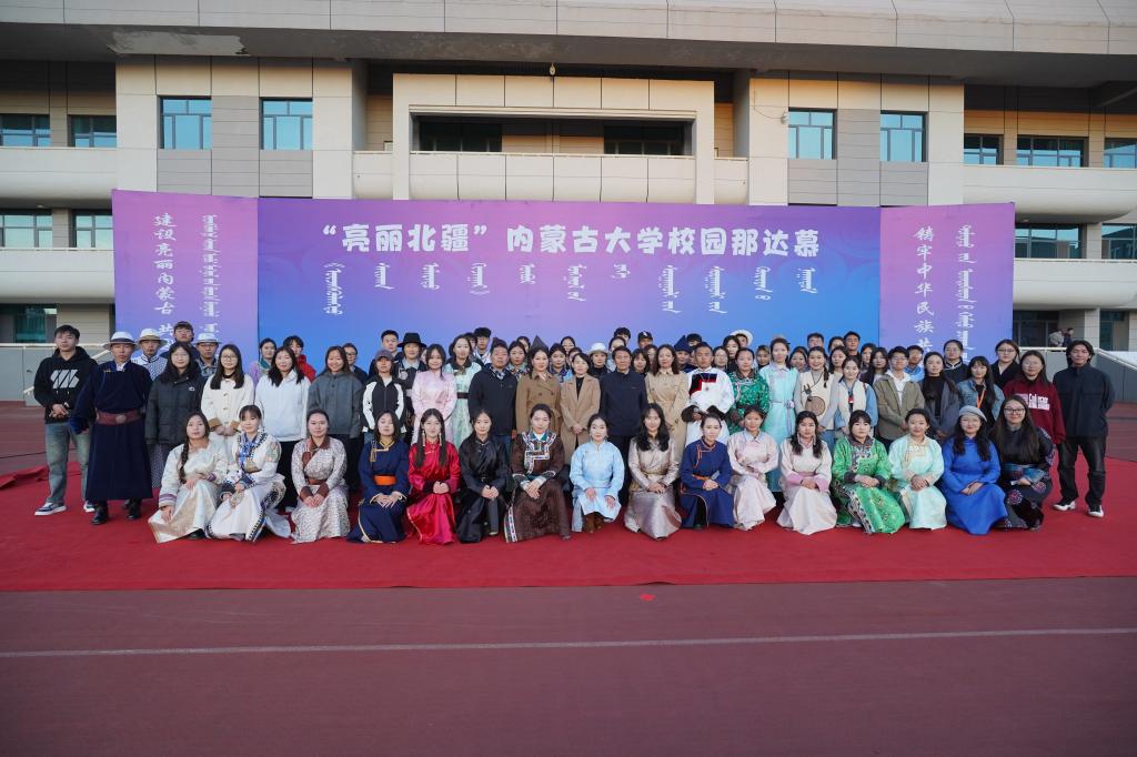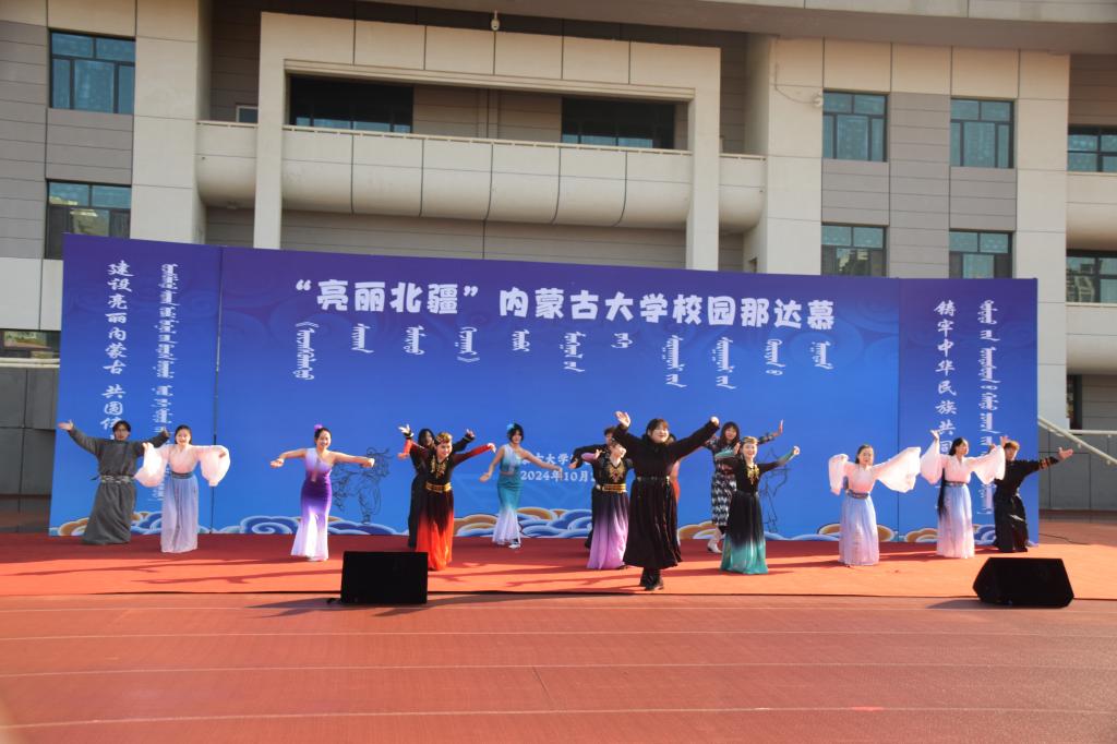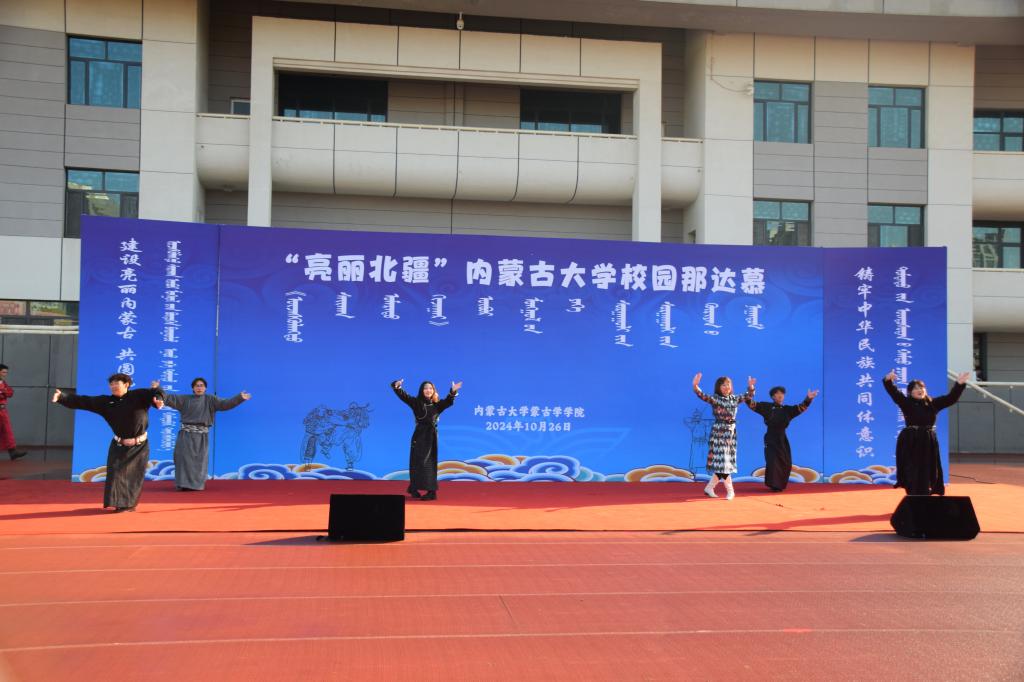 2024年10月26日,在我校赛罕校区操场隆重举行“亮丽北疆”校园那达慕。该活动以铸牢中华民族共同体意识为主线,将北疆草原文化中的传统那达慕引入校园,举行传统艺术表演、体育比赛、游戏比赛,演绎一场校园特色那达慕,打造一道北疆亮丽风景线。我校相关职能部门及学院领导、师生2000余人参加。