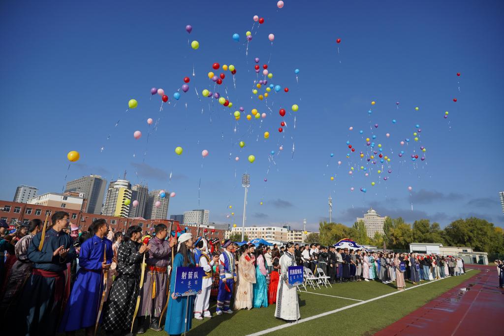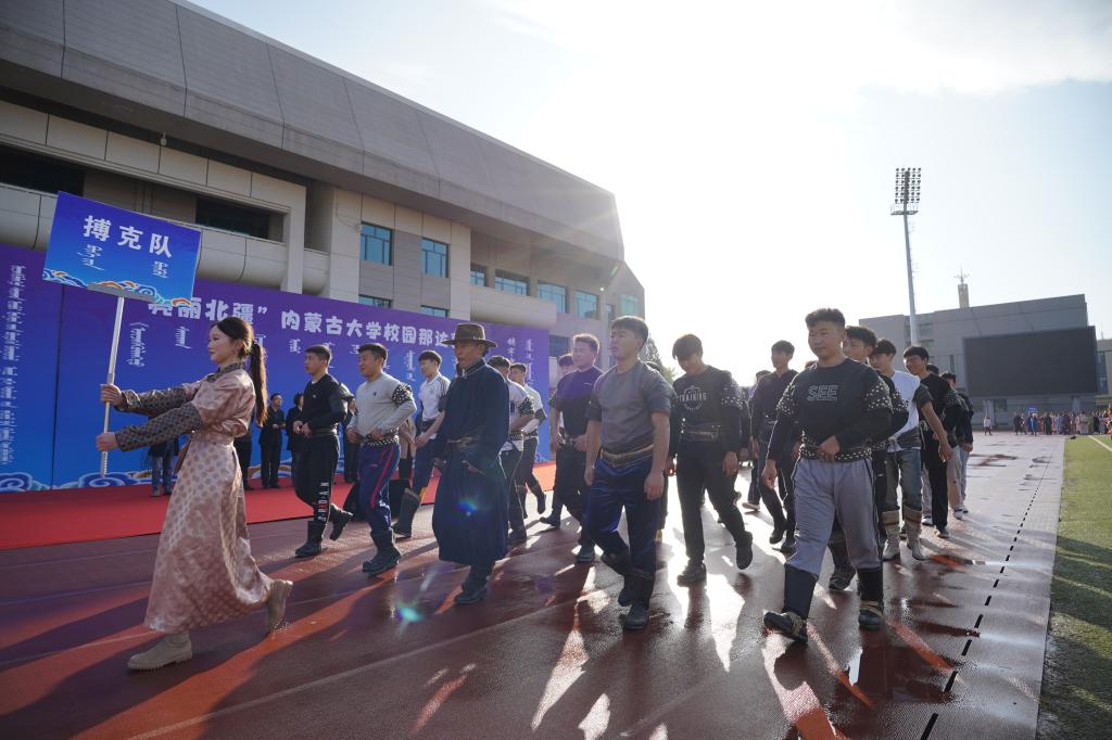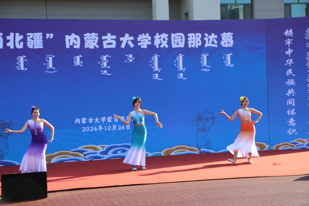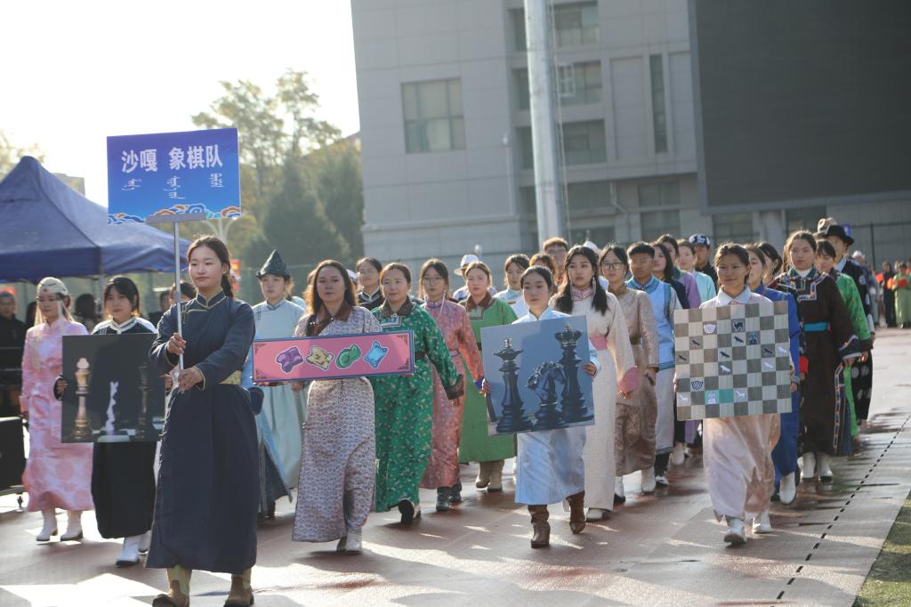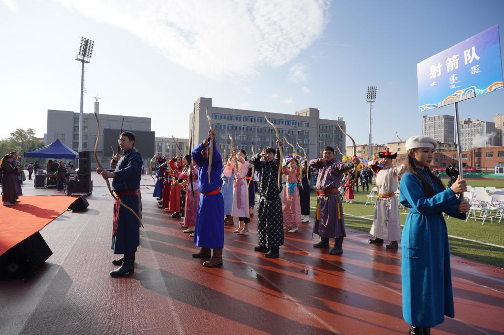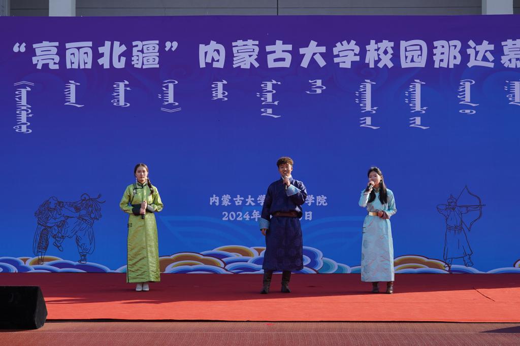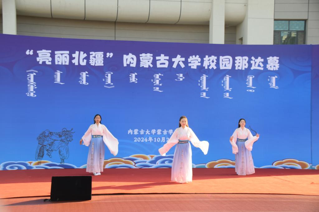 2024年10月26日,在我校赛罕校区操场隆重举行“亮丽北疆”校园那达慕。该活动以铸牢中华民族共同体意识为主线,将北疆草原文化中的传统那达慕引入校园,举行传统艺术表演、体育比赛、游戏比赛,演绎一场校园特色那达慕,打造一道北疆亮丽风景线。我校相关职能部门及学院领导、师生2000余人参加。