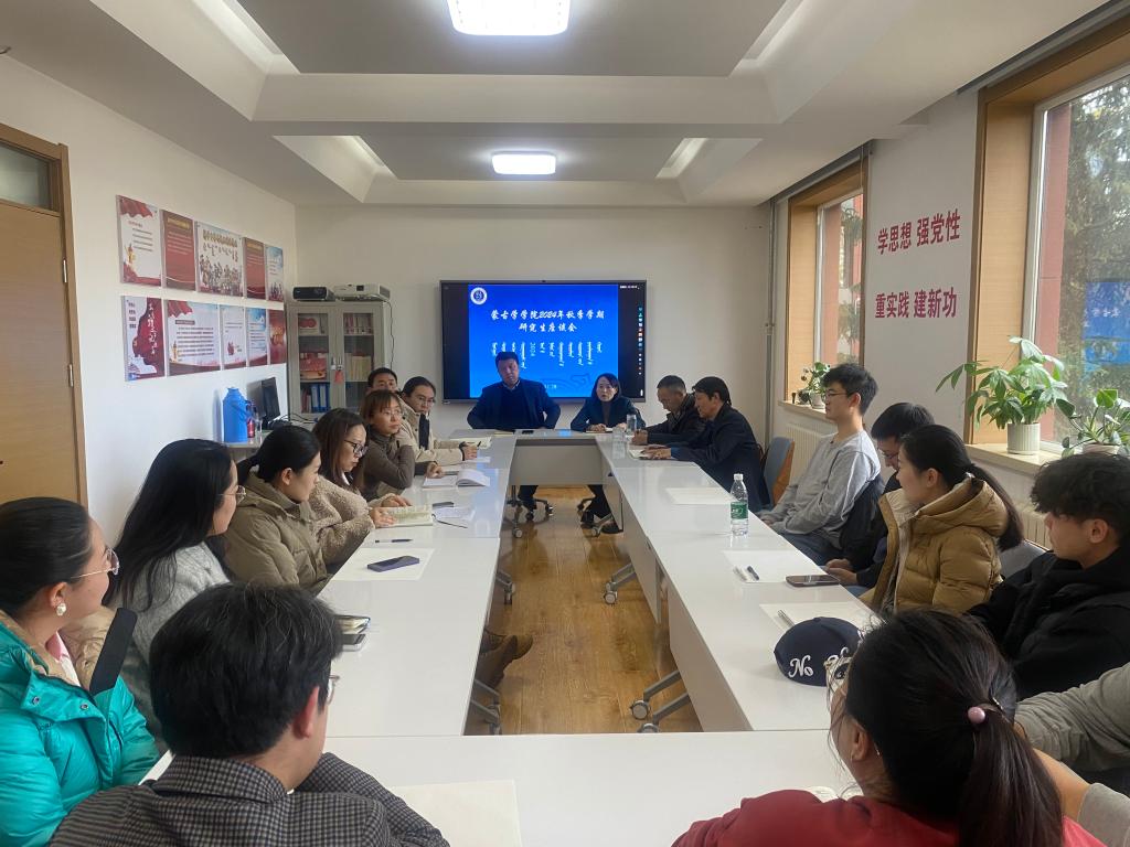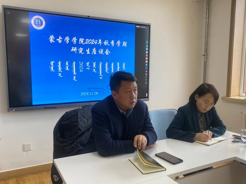 为促进学院与学生的沟通交流、给学生成长成才保驾护航,太阳集团tyc151cc于11月28日下午在二楼小会议室举办了2024年秋季学期研究生座谈会。学院党委书记八格、院长吴英喆、党委副书记孟海光、副院长敖特根白乙拉、蒙古历史学系负责人李哲、教务办和学工办负责人及来自各年级各专业的16名研究生代表参加会议。座谈会分学生发言和师生交流两个环节举行,学院党委副书记孟海光主持会议。