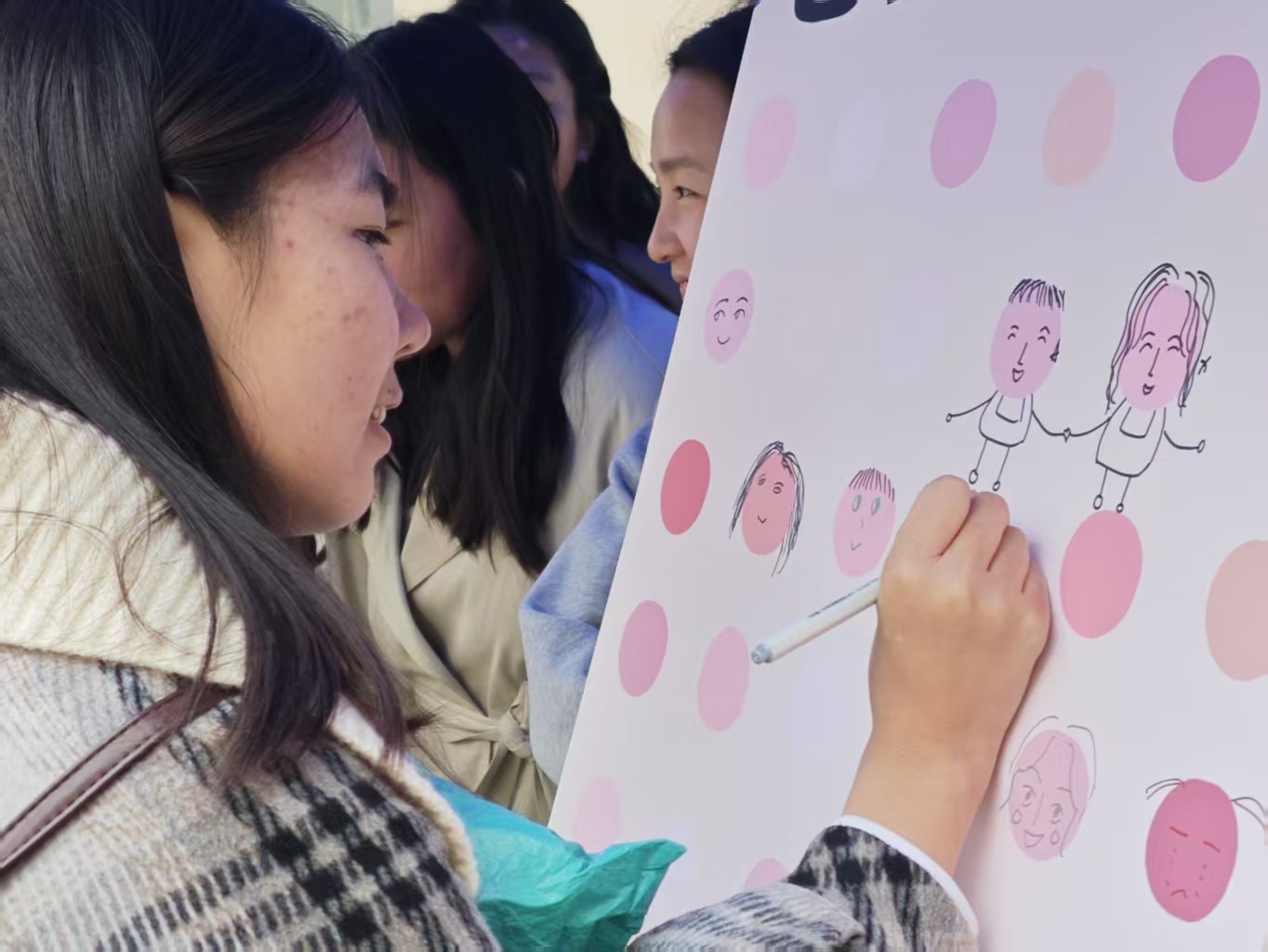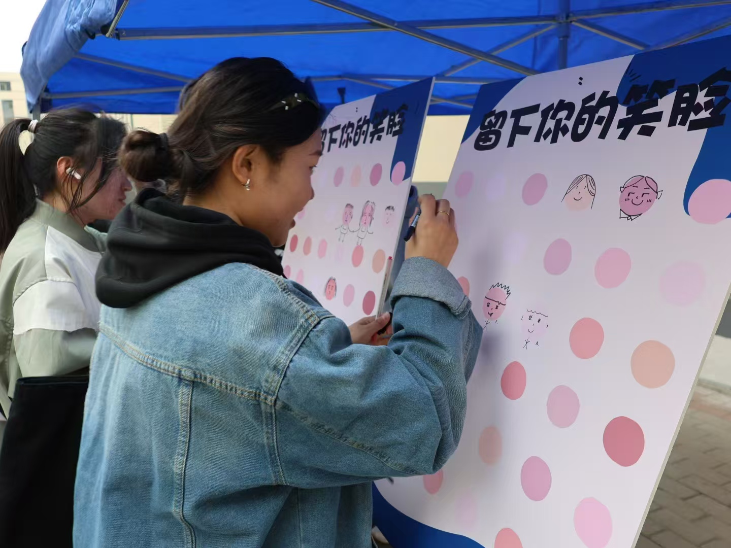 为进一步推动“一站式”学生社区心理健康教育,加强同学们的自我认知和情感表达能力,培育乐观积极的心理品质,3月28日,太阳集团tyc151cc在学生公寓4号楼前开展了“解压力枷锁 启心灵之窗”主题“3.25”心理健康活动。
