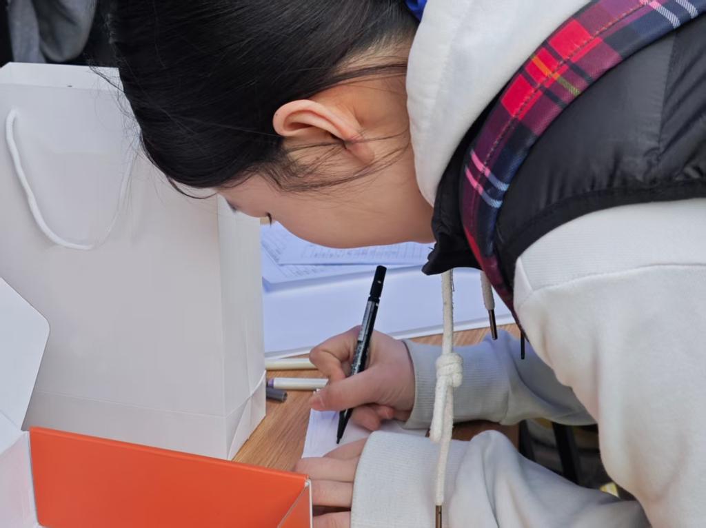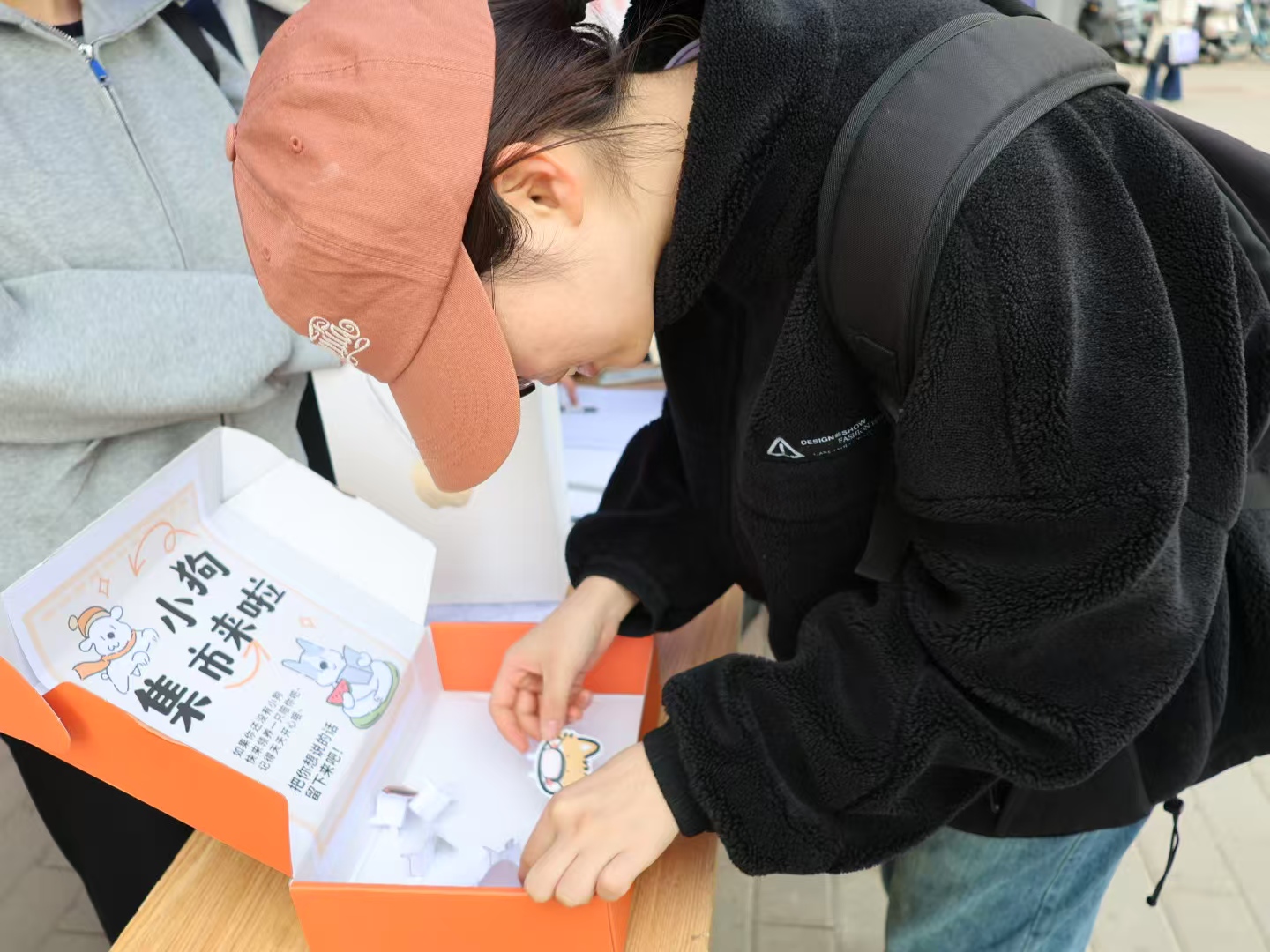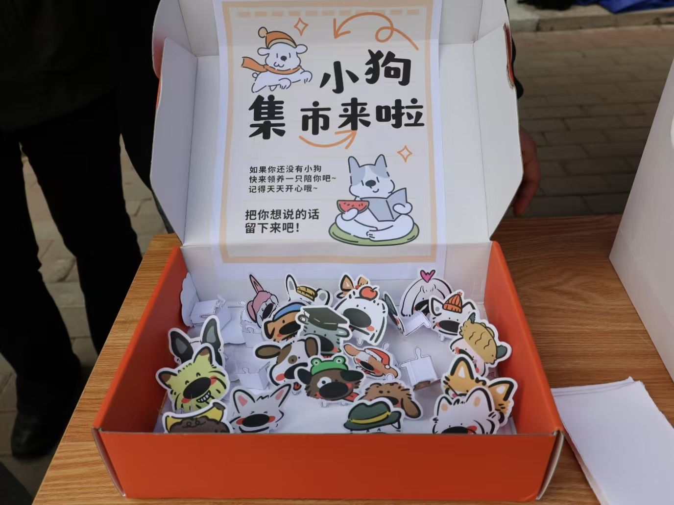 现场设置了“小狗集市”和“心灵寄语”环节。同学们在心灵寄语便签上写下了自己想要倾诉的话语、愿望或祝福,并挑选领养自己心仪的“小狗”。这些“小狗”不仅是手工作品,更是同学们情感的寄托和心灵的慰藉,帮助同学们在忙碌的学习之余,寻得一处心灵的栖息地,感受着简单而纯粹的美好。