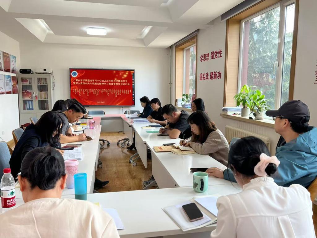 2025年4月15日下午,太阳集团tyc151cc在蒙古学楼二楼小会议室召开理论学习中心组2025年第二次集体学习暨深入贯彻中央八项规定精神学习教育专题研讨会,集体学习习近平总书记在2024年10月28日中央政治局第十七次集体学习上的重要讲话精神和习近平总书记在2024年6月24日全国科技大会、国家科学技术奖励大会、两院院士大会上的重要讲话精神,并集体学习违反中央八项规定及其实施细则典型案例。学院党委书记八格主持学习并领学。
