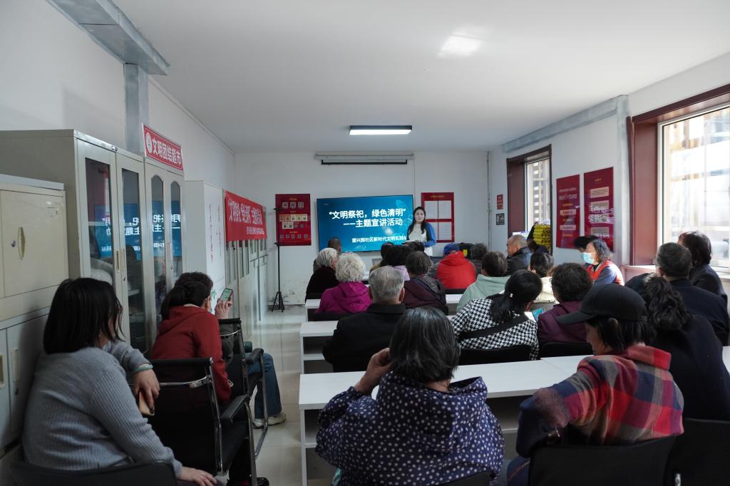 活动现场,学生第四党支部党员莫希勒、茉莉、乌苏仁贵与社区工作人员密切配合,通过发放宣传手册、现场宣讲等形式,讲解现代祭祀理念与低碳环保的祭祀方式,向居民阐述清明祭扫传统与新时代移风易俗的意义。同学们用通俗易懂的语言传递绿色环保理念,引导大家转变传统观念,树立文明新风。