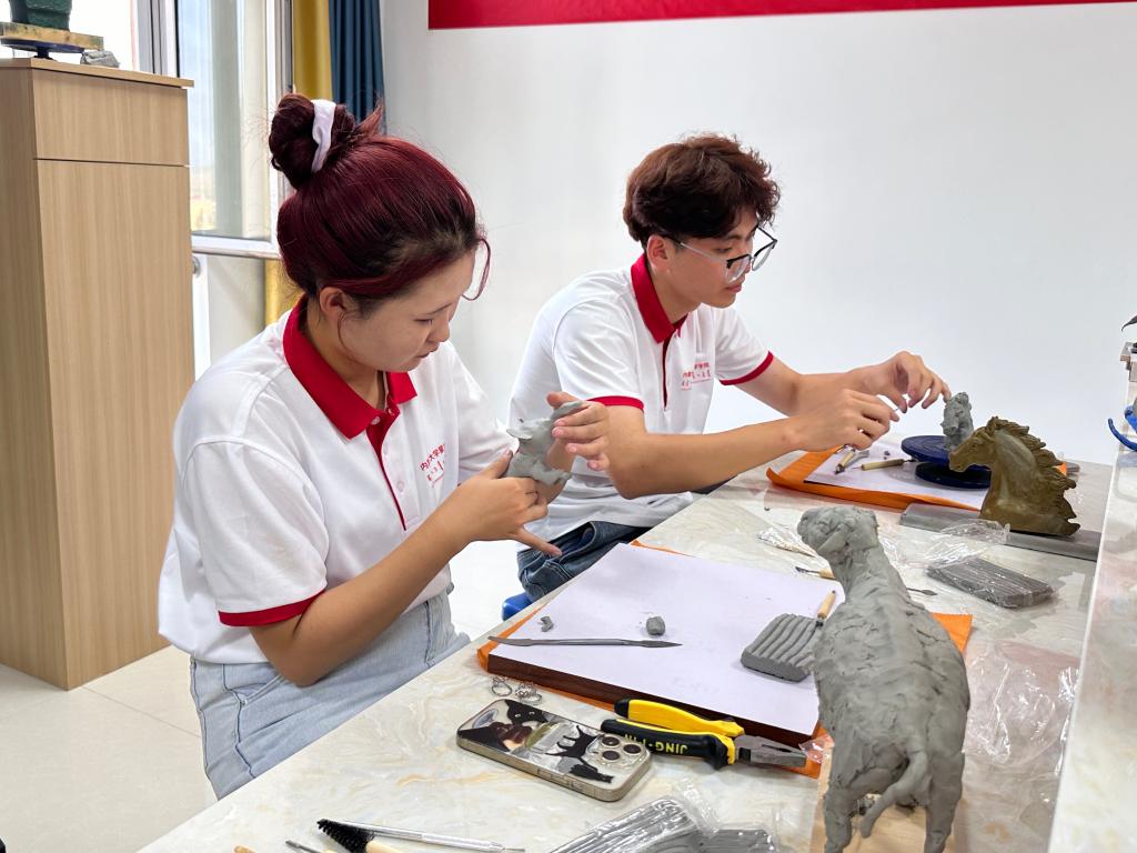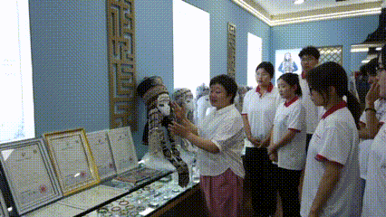 7月9日下午,实践团到云谢卜银饰制作工作室,欣赏到精美的蒙古族银制艺术品和日常饰品,了解到蒙古族银饰创作作为历史长河中沉淀的文化符号,承载着人民对美好生活的写实和向往。在自治区级非物质文化遗产传承人苏雅拉巴图老师的指导下,亲自动手体验制作了银戒。接着,实践团参观了鄂托克旗民族综合职业中学雕塑展厅,欣赏了一件件精美的泥塑作品,在民间雕刻雕塑非物质文化传承人乌云其木格老师的指导下,了解到泥塑的制作过程,充分发挥想象力和创造力,动手制作形式多样的泥塑作品。