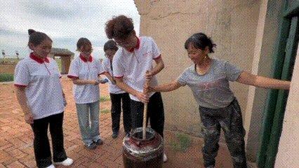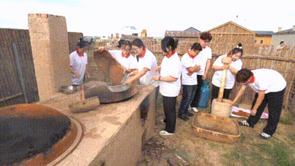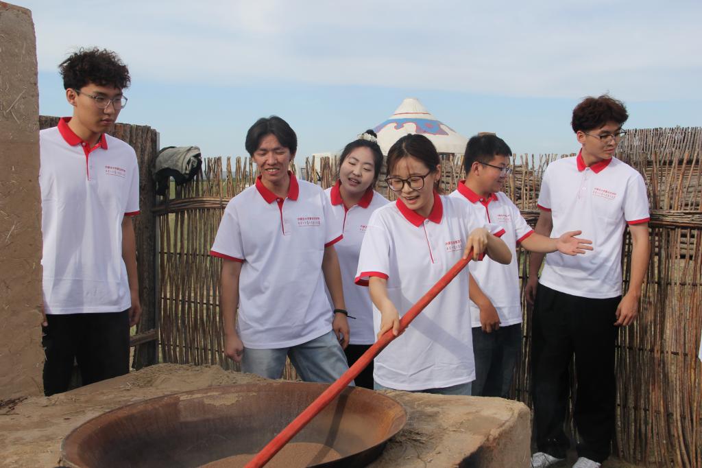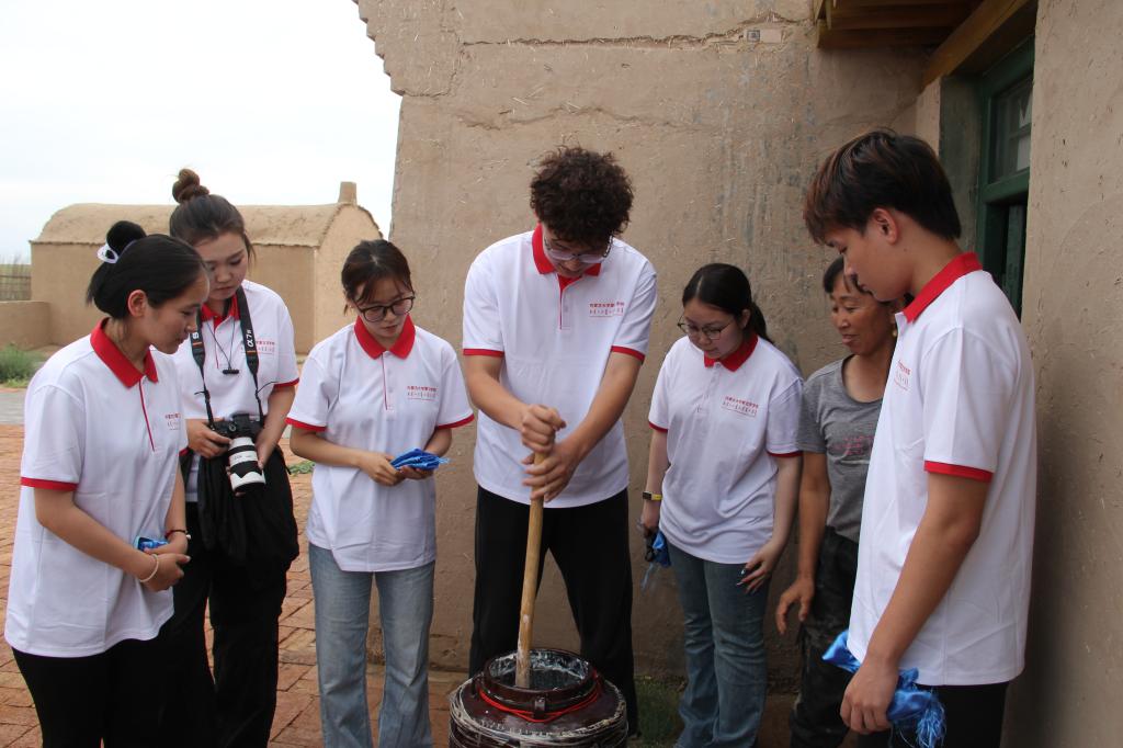 7月7日下午,实践团到巴音乌素嘎查体验酸奶和炒米的传统制作技艺。陶罐中的鲜奶、大锅中的炒米,都在实践团成员的齐心协作下成为草原特色美食。手工制作让实践团师生真正了解到劳动人民的生活智慧。