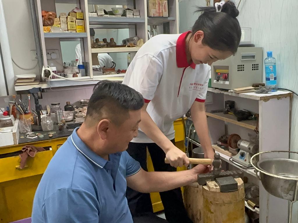 实践团师生前往五所非遗传承基地,与非遗传承人互动交流,动手体验了非遗手工艺。