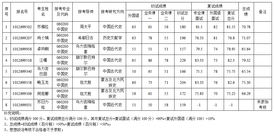 蒙古历史学系2024年博士生普通招生考试成绩公示表