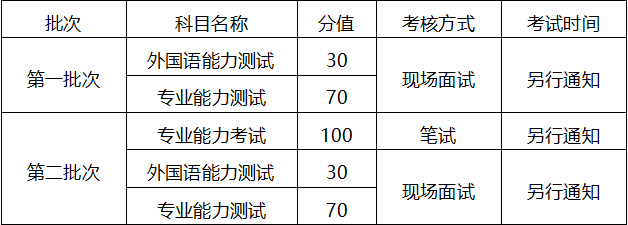 第一批次招生,采取单一面试形式进行选拔;第二批次招生,采用面试与笔试相结合的综合考核方式。