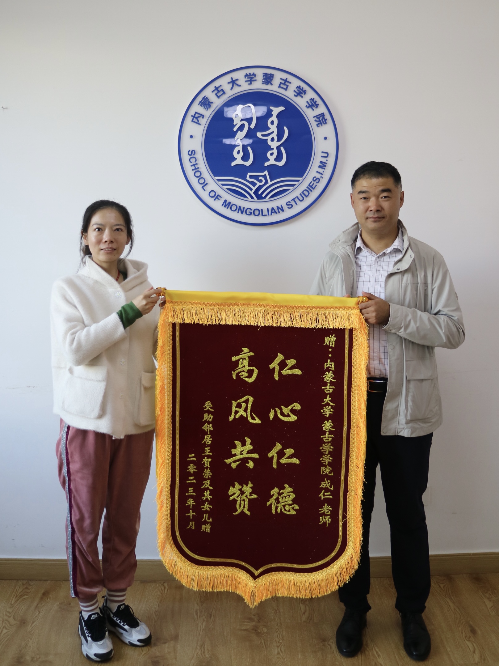 人情况稳定后,也不忘当晚及时出现的成仁老师。10月23日,老人的女儿专门带着锦旗来到太阳集团tyc151cc亲自答谢这位“救命恩人”,在和学院领导的热切谈话中,讲述了事发当晚的经过,不仅表达了对于成仁老师见义勇为的再次感谢,同时也对太阳集团tyc151cc培养了这样一位青年教师表示由衷的感谢。